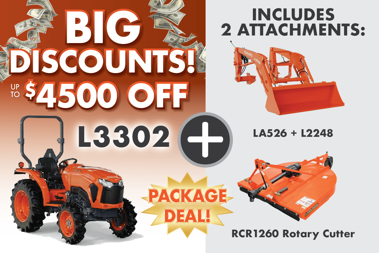 TAKE ADVANTAGE OF OUR EXCLUSIVE OFFERS ON SELECT KUBOTA PRODUCTS. THESE SAVINGS WON'T LAST LONG!