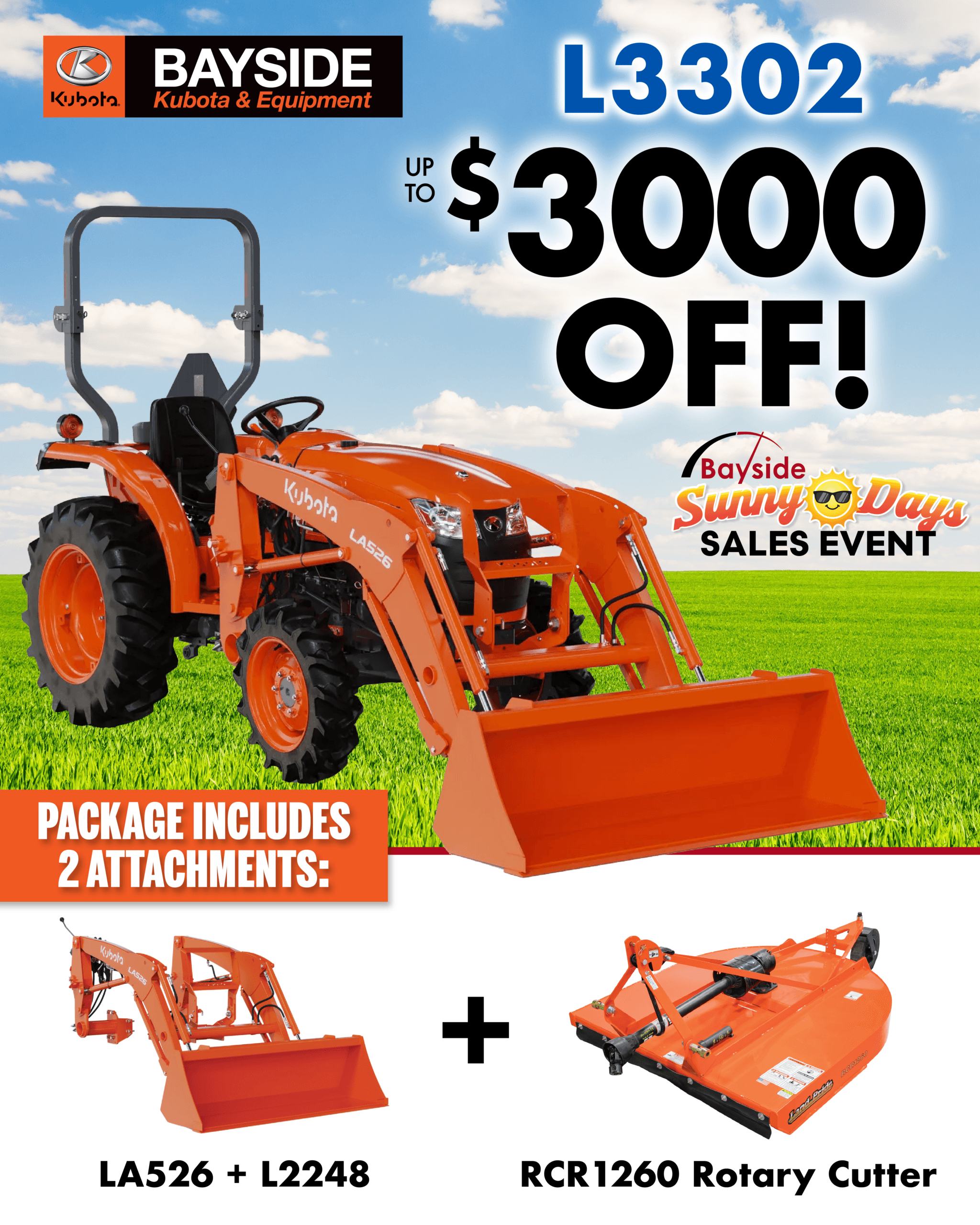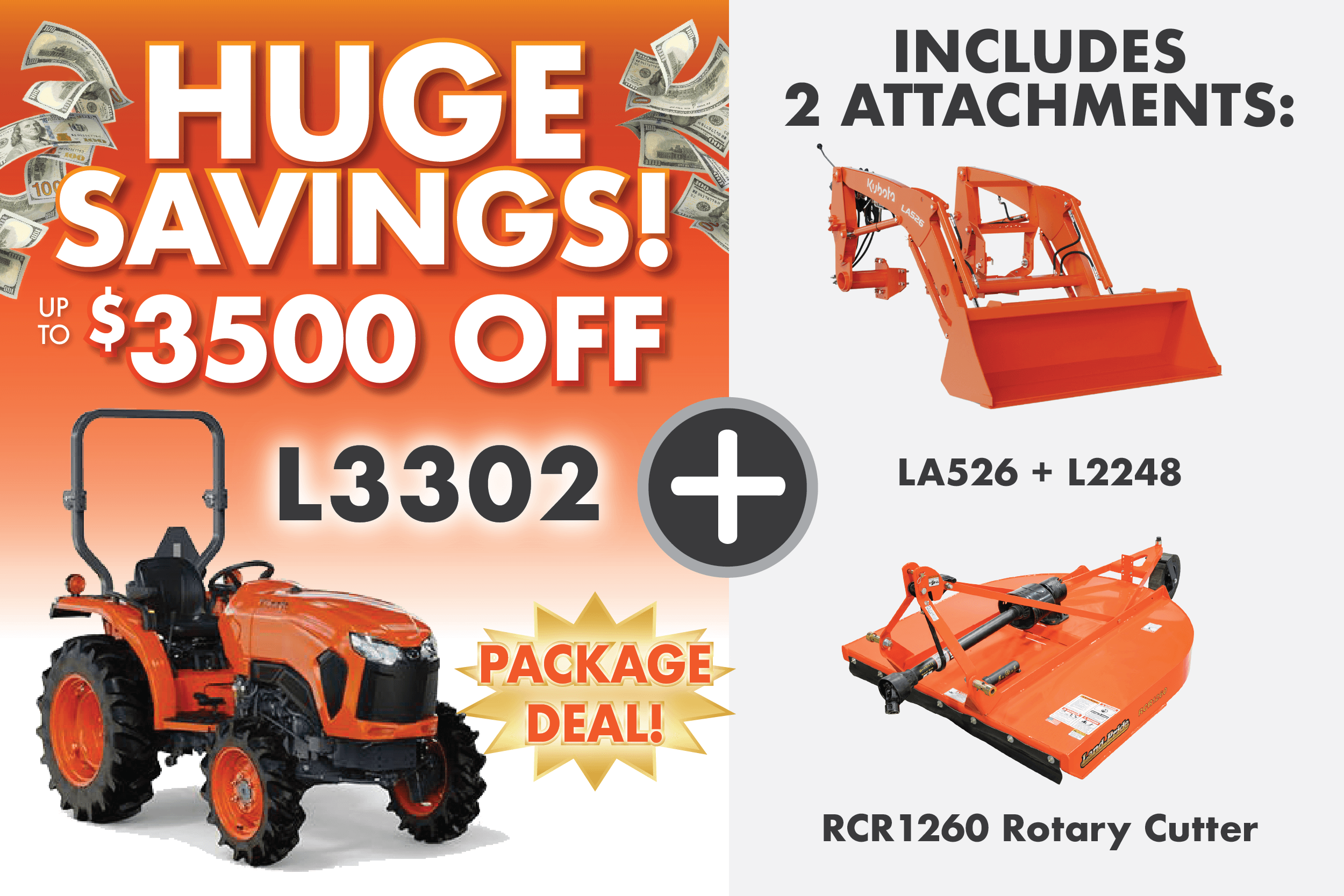 TAKE ADVANTAGE OF OUR EXCLUSIVE OFFERS ON SELECT KUBOTA PRODUCTS. THESE SAVINGS WON'T LAST LONG!