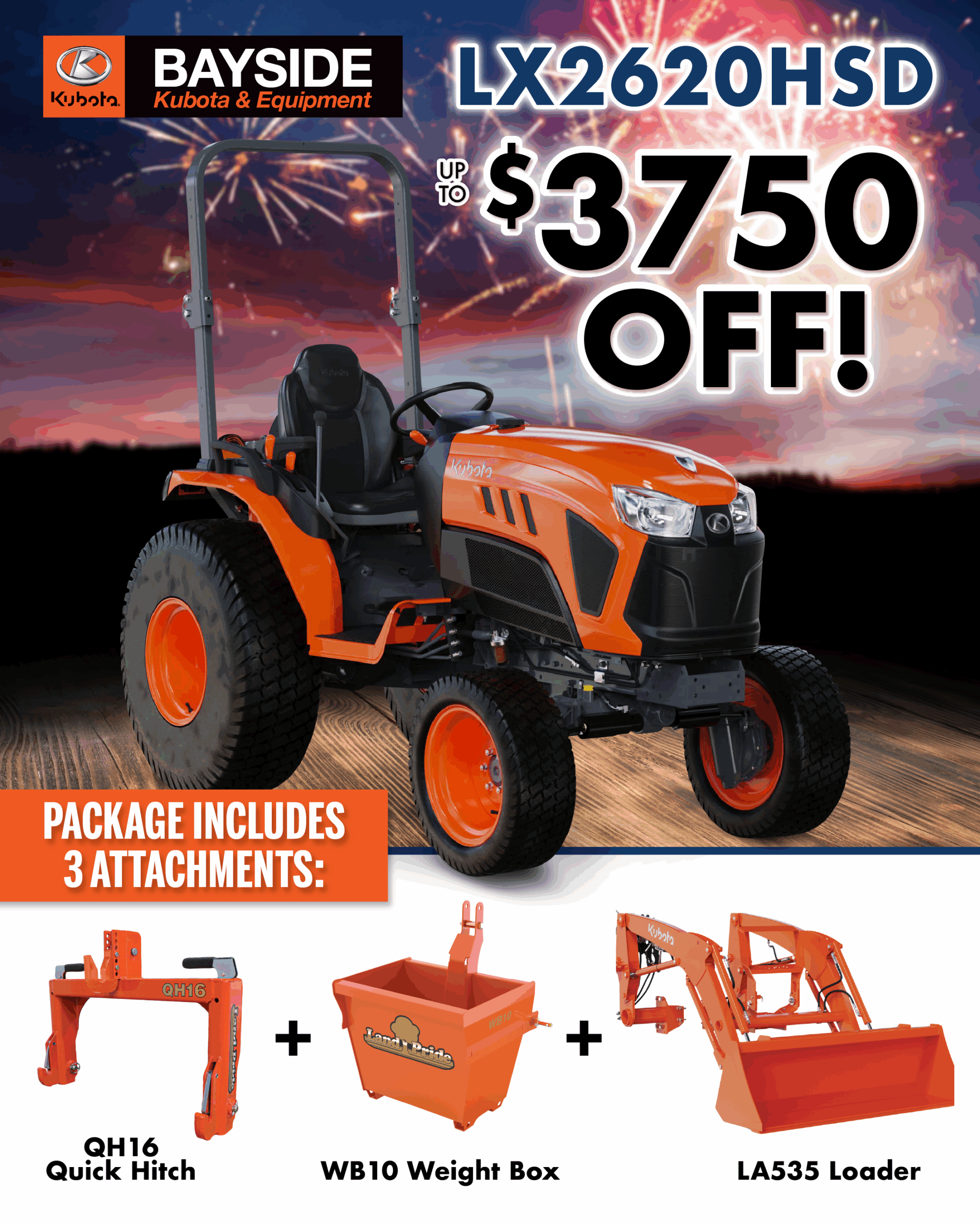 TAKE ADVANTAGE OF OUR EXCLUSIVE OFFERS ON SELECT KUBOTA PRODUCTS. THESE SAVINGS WON'T LAST LONG!