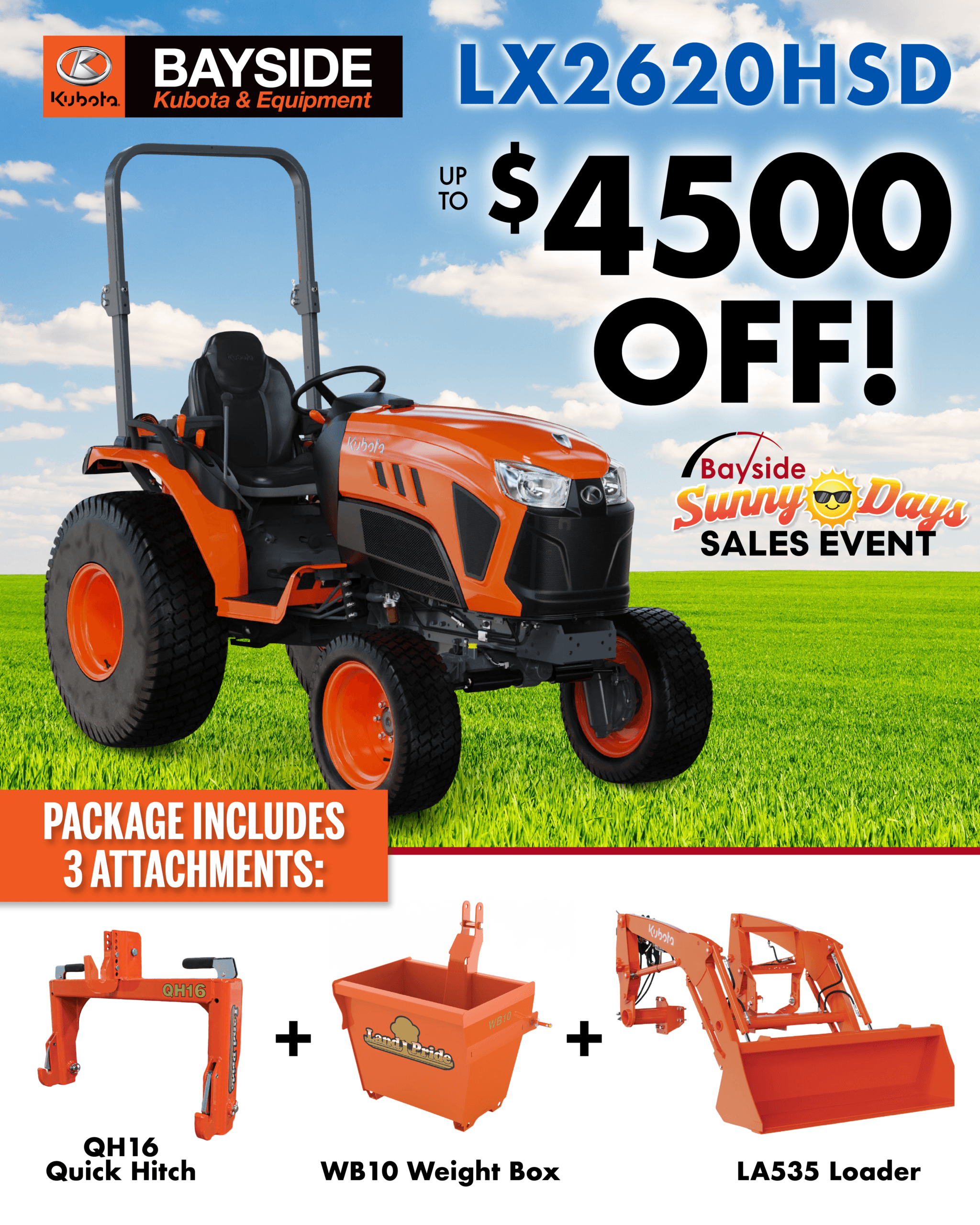TAKE ADVANTAGE OF OUR EXCLUSIVE OFFERS ON SELECT KUBOTA PRODUCTS. THESE SAVINGS WON'T LAST LONG!